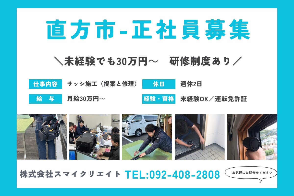 直方市の求人【正社員】サッシ施工スタッフ未経験者歓迎!月給30万円~|賞与年2回|週休2日